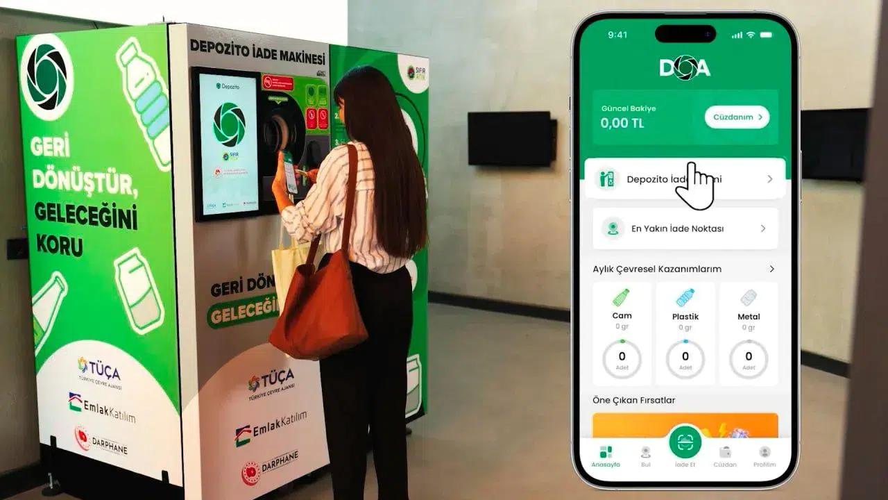 Sistem kapsamında, “Depozitosu Olan Ambalajlar” (DOA) logosu taşıyan plastik, cam ve alüminyum gibi malzemeler, depozito iade makineleri aracılığıyla geri dönüştürülüyor. Pilot uygulama kapsamında Sakarya il ve Ankara’nın Kızılcahamam ilçesi seçildi. Bugüne kadar Ankara’daki Bakanlık ana hizmet binası, Türkiye Çevre Ajansı Binası, Cumhurbaşkanlığı Külliyesi ve Sakarya, Samsun, Erzurum, Konya, Gaziantep, Mersin, İzmir’de kurulan makineler sayesinde 5,8 milyon tek kullanımlık içecek ambalajı toplanarak ekonomiye kazandırıldı.