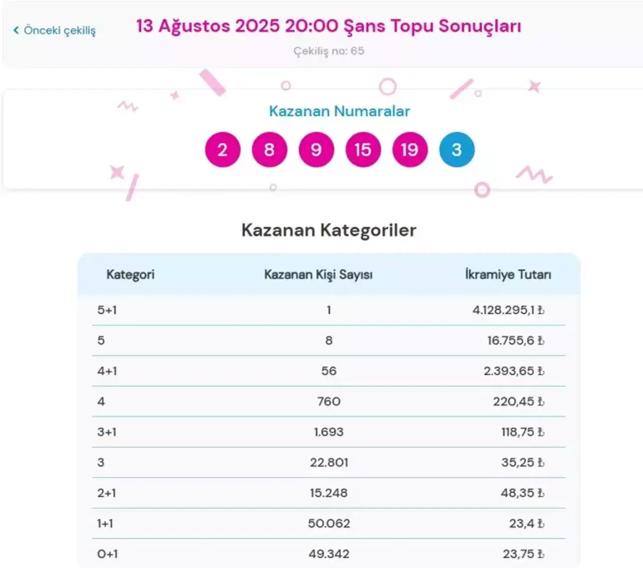 13 AĞUSTOS ŞANS TOPU SONUÇLARI AÇIKLANDI