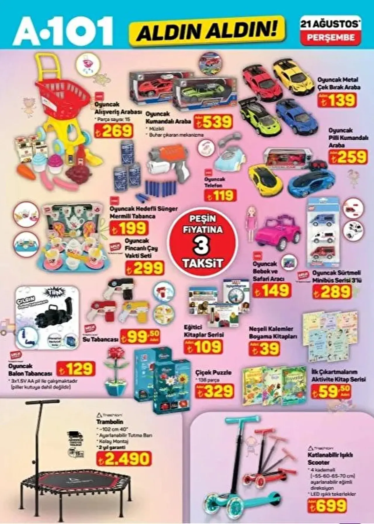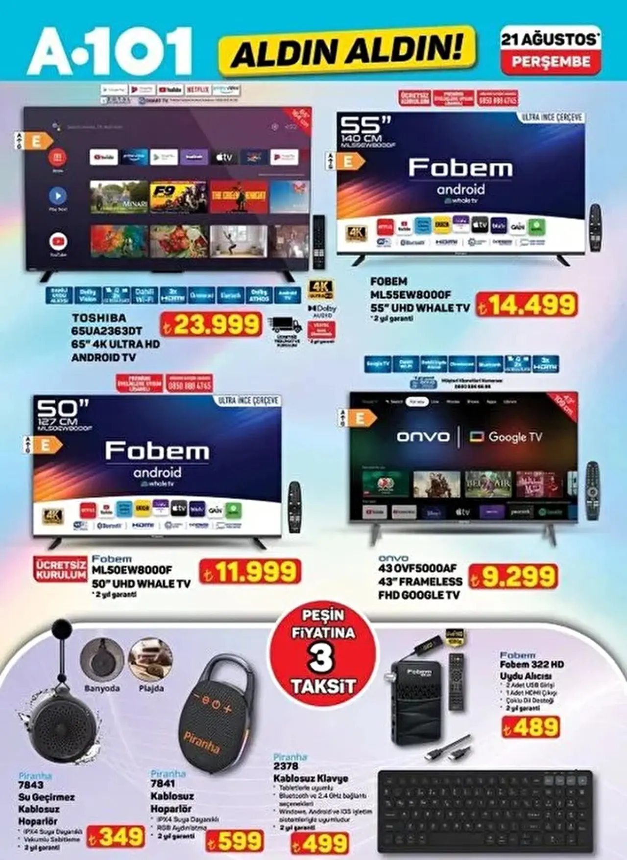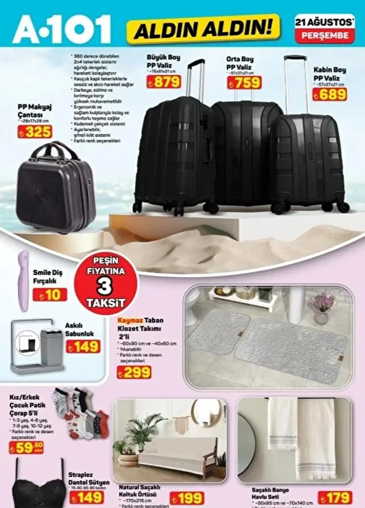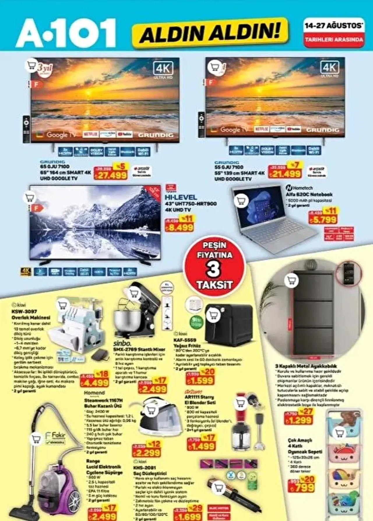 A101, 21 Ağustos 2025 tarihinden itibaren geçerli olacak yeni aktüel ürünler kataloğunu duyurdu. Bu haftadan itibaren raflarda yerini alan kampanyalı ürünler; teknolojiden beyaz eşyaya, kırtasiye malzemelerinden küçük ev aletlerine kadar geniş bir ürün yelpazesini kapsıyor. Ürünler, sınırlı süreli avantajlı fiyatlarla tüketiciyle buluşuyor.