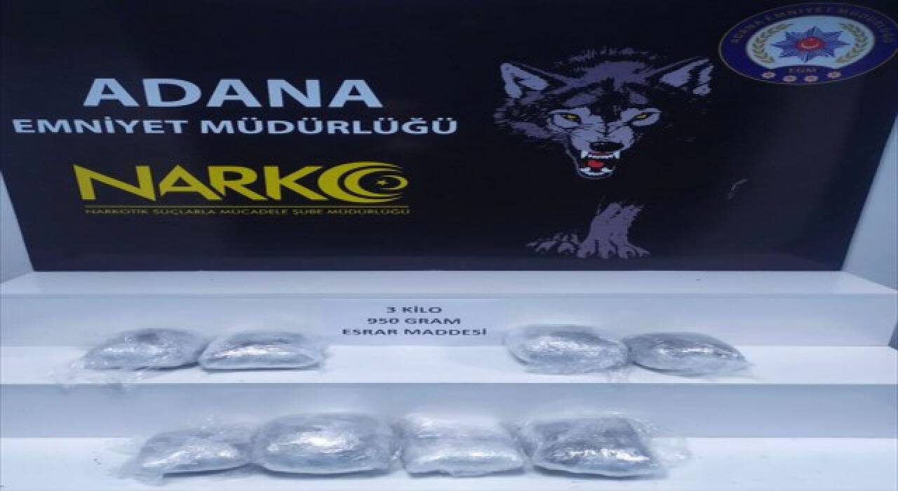 Adana'da otomobilinde 3 kilo 950 gram esrar ele geçirilen sürücü tutuklandı.