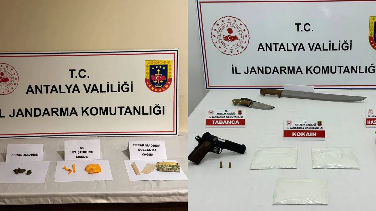 Antalya’da jandarma tarafından gerçekleştirilen çalışmalarda, Kepez, Kemer ve Döşemealtı ilçelerinde çok sayıda uyuşturucu madde ele geçirildi.