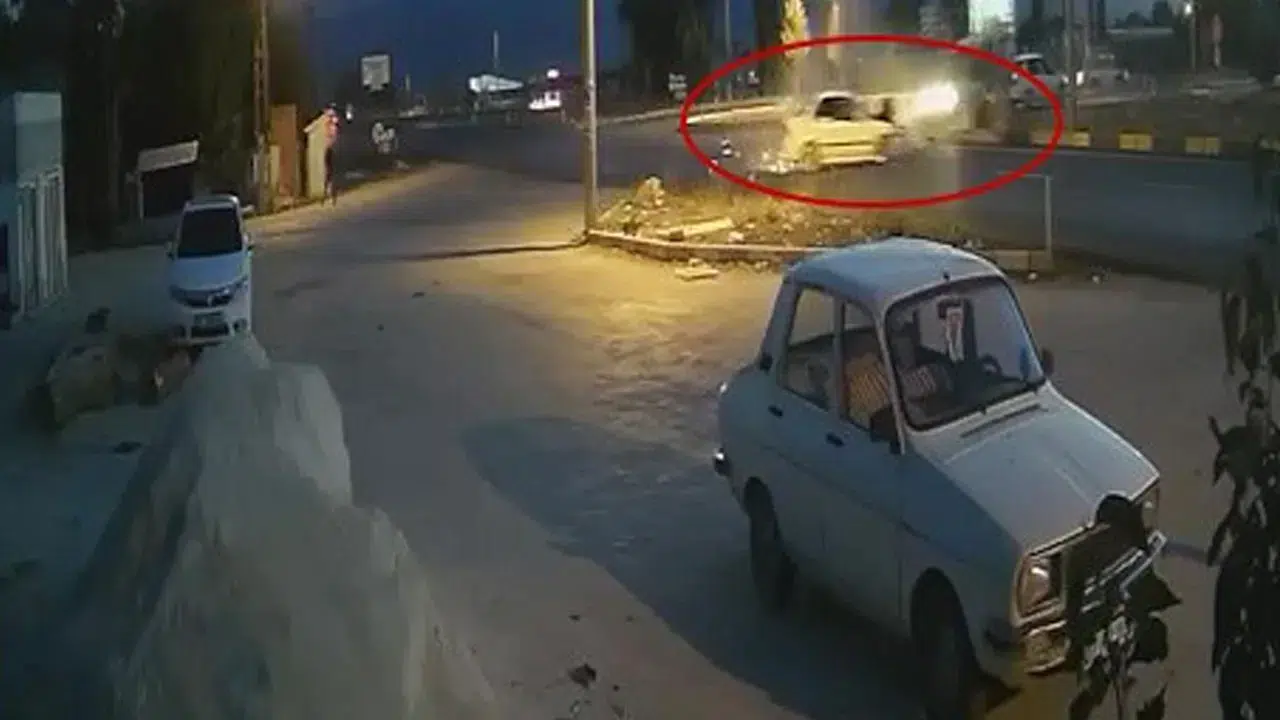Kaza anı ise güvenlik kamerasına saniye saniye yansıdı. Görüntülerde, kavşak sistemine yaklaşarak bir süre arkadan gelen araçların geçmesini bekleyen 07 EOJ 18 plakalı hafif ticari aracın sola dönmek için hareketlendiği sırada 07 EM 414 plakalı otomobille çarpıştığı ve çarpmanın şiddetiyle hafif ticari aracın savrularak takla attığı görüldü.