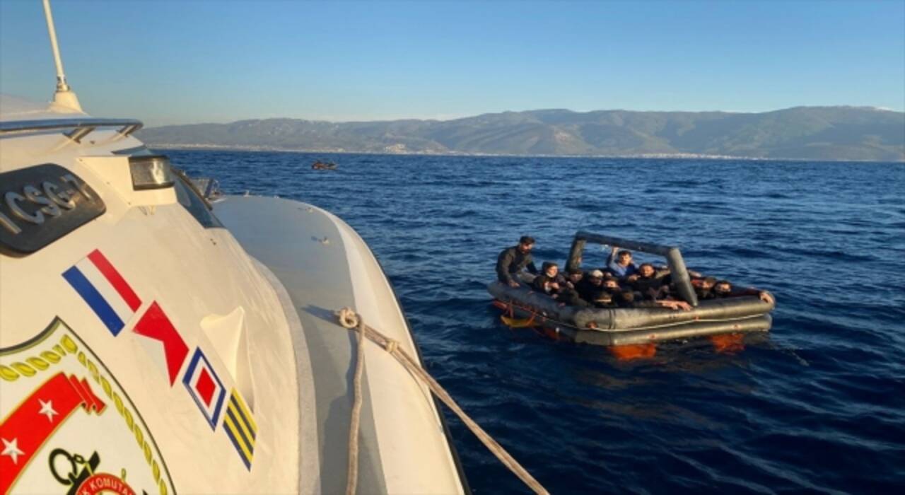 Aydın'da, Yunanistan unsurlarınca Türk kara sularına itilen can sallarındaki 67 düzensiz göçmen karaya çıkarıldı.