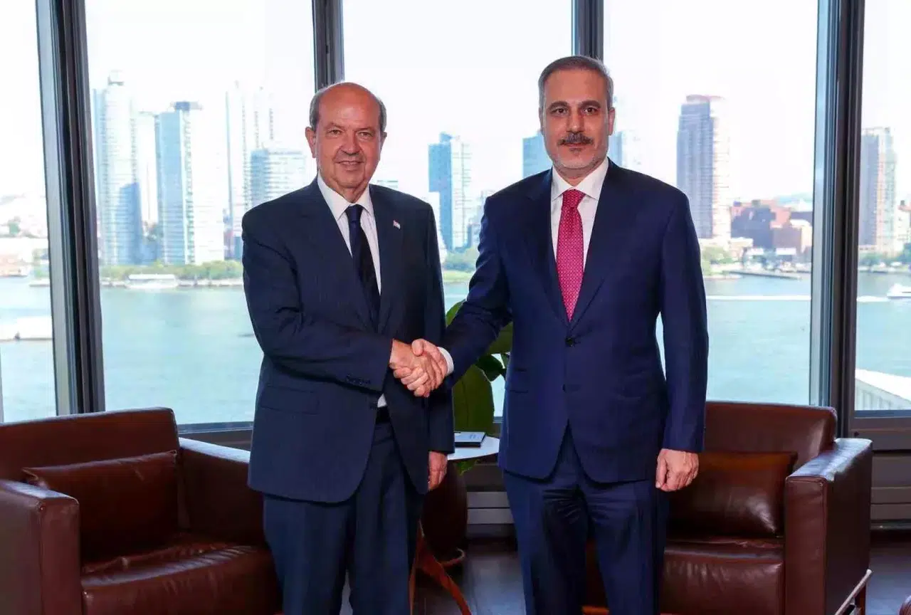 Dışişleri Bakanı Hakan Fidan, resmi ziyaret kapsamında bulunduğu ABD’nin New York şehrinde Kuzey Kıbrıs Türk Cumhuriyeti (KKTC) Cumhurbaşkanı Ersin Tatar ile bir araya geldi. Fidan, temasları çerçevesinde Cumhurbaşkanı Recep Tayyip Erdoğan’a 80. Birleşmiş Milletler (BM) Genel Kurulu programında eşlik ediyor.