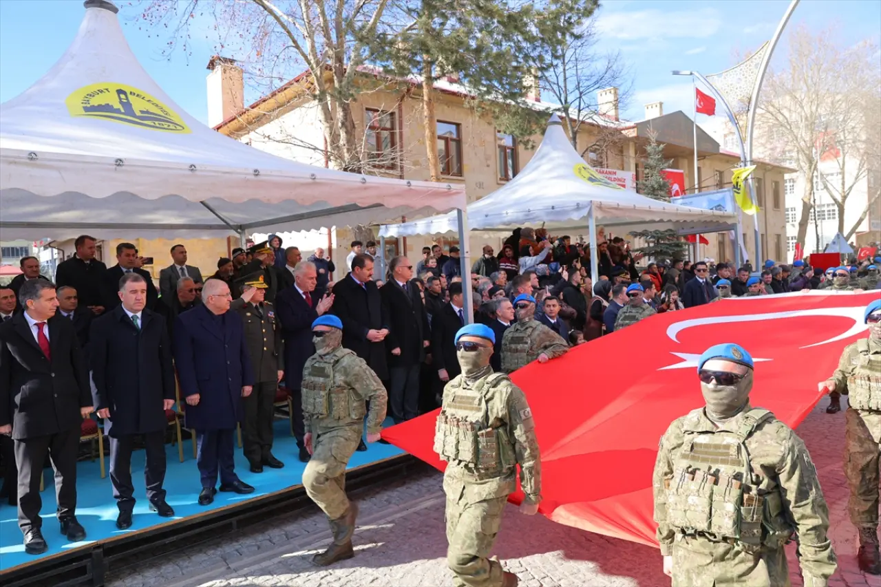 "Tarihin destandır, halkın kahraman/Kop Dağı'nda vurdun Moskof'u yaman/Devleri devirir sendeki iman/Daha nice asker bekliyor ordum/Genç Osman nesli yiğit Bayburt'um" mısralarını okuyan Güler, "Böylesine yiğitler diyarı güzel bir memleketimiz olduğu için gurur duyuyoruz. Bu kahraman atalarımızın torunları olan siz hemşehrilerimin bugün de gösterdiği kararlı milli duruş, ülkemizin birlik ve beraberliğinin teminatıdır" diye konuştu.