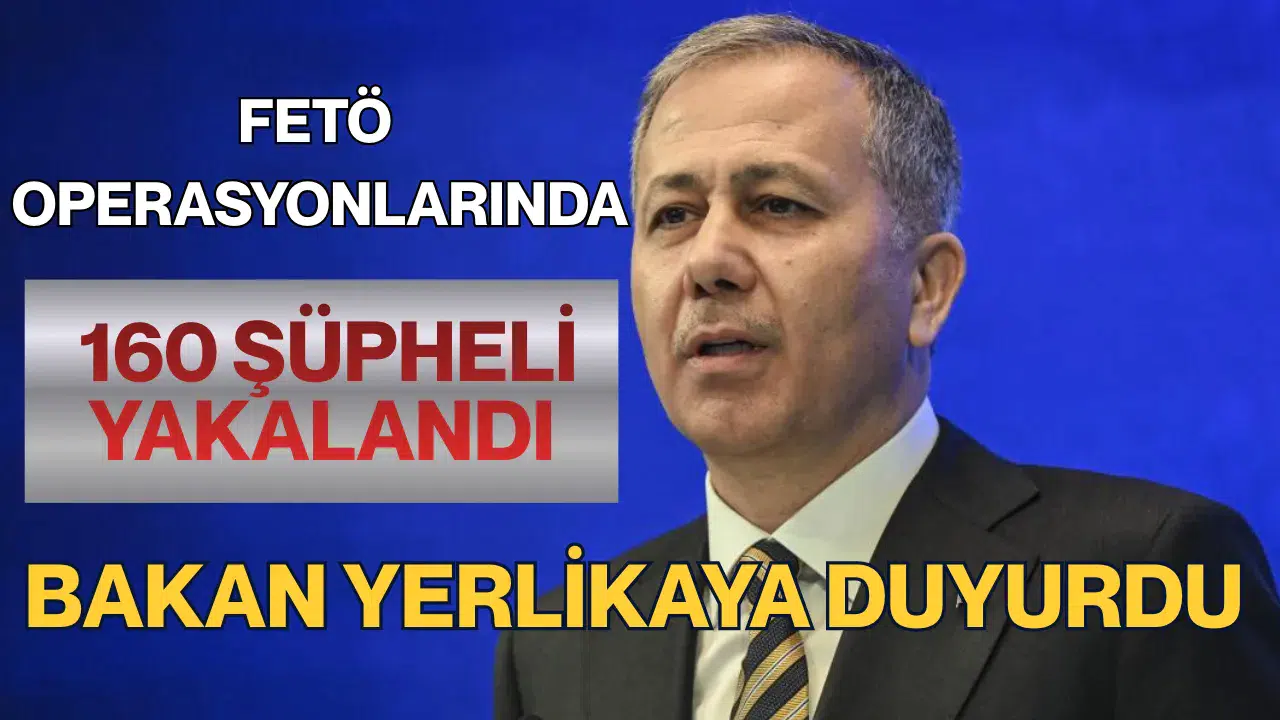 İçişleri Bakanlığı, FETÖ’ye yönelik yürütülen operasyonlara ilişkin son verileri kamuoyuyla paylaştı. Bakanlık açıklamasında, polis ekipleri tarafından son iki haftadır devam eden operasyonlarda 160 şüphelinin yakalandığı belirtildi.