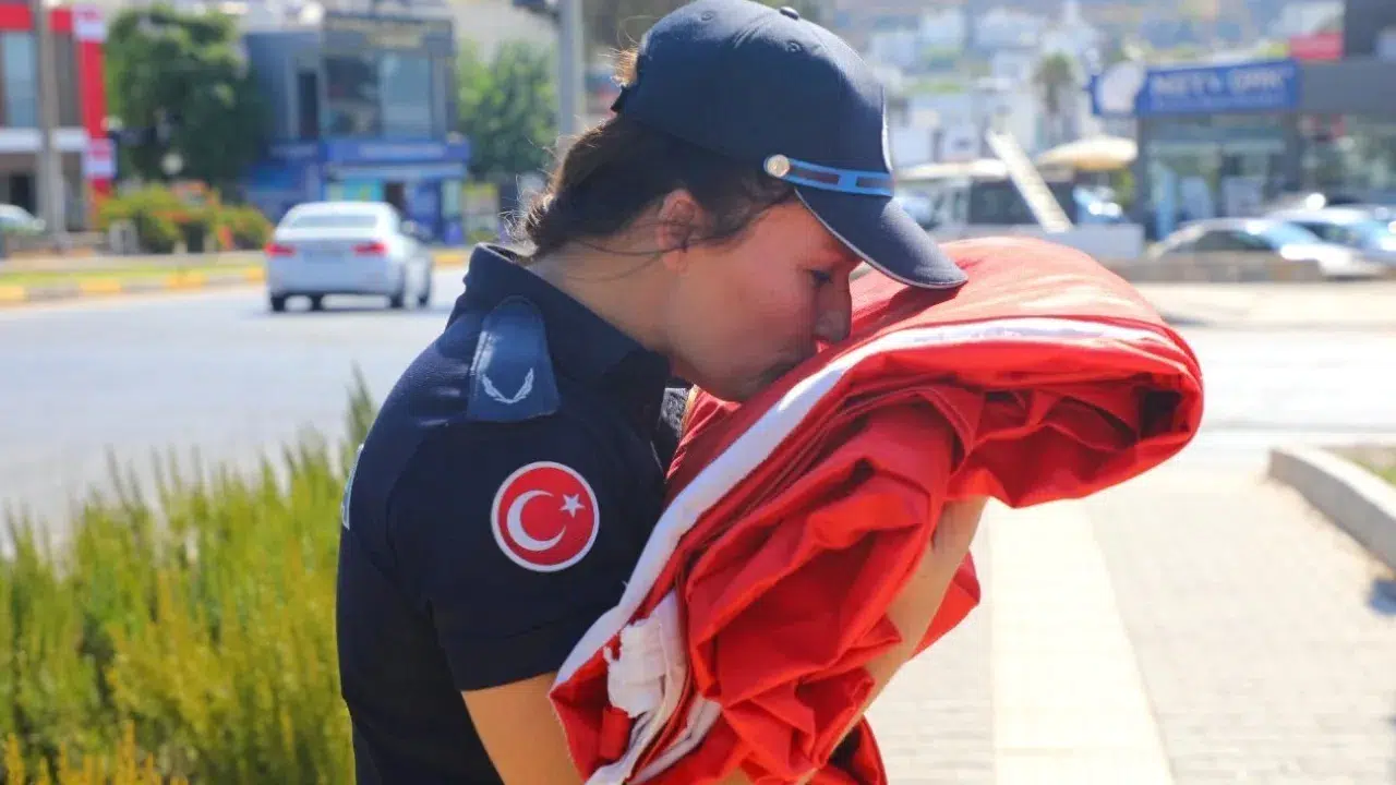 Muğla’nın Bodrum ilçesinde dev Türk bayraklarını yıllardır ücretsiz tamir eden terzi Ali Akay’a Bodrum Belediyesi özel bir teşekkür ederek, plaket verdi. Müskebi Mahallesi Bayraklı Kavşak’ta bulunan dev Türk bayraklarını yıllardır ücretsiz tamir eden 20 yıllık terzi Ali Akay’a, Bodrum Belediyesi tarafından teşekkür plaketi verildi. Bayraklı Kavşak’ta asılı bulunan dev Türk bayrağı, yıl içinde hava şartlarına göre ortalama 25 kez zabıta ekiplerince değiştiriliyor. Bu değişim sonunda Türk bayrağı, terzi Ali Akay’a götürülerek tamir ettiriliyor ve bir sonraki değişimde yeniden kullanılıyor.
