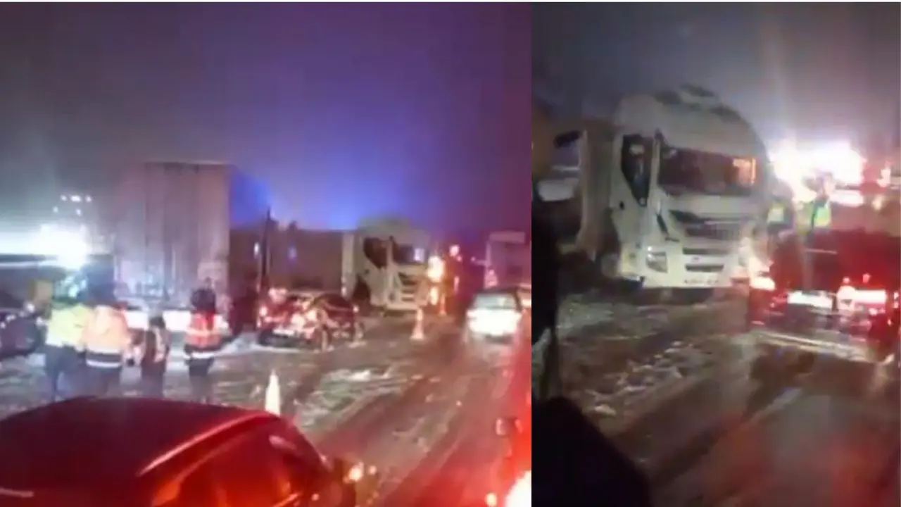 Bolu Dağı'nda etkili olan kar yağışı nedeniyle ulaşımda aksamalar yaşanırken, 6 aracın karıştığı bir zincirleme trafik kazası meydana geldi.