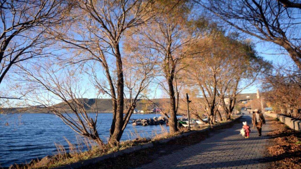 Son günlerde sonbahar renklerinin hakim olduğu Çıldır Gölü'nde, sararan ağaç ve yapraklar güzel manzaralar oluşturdu.