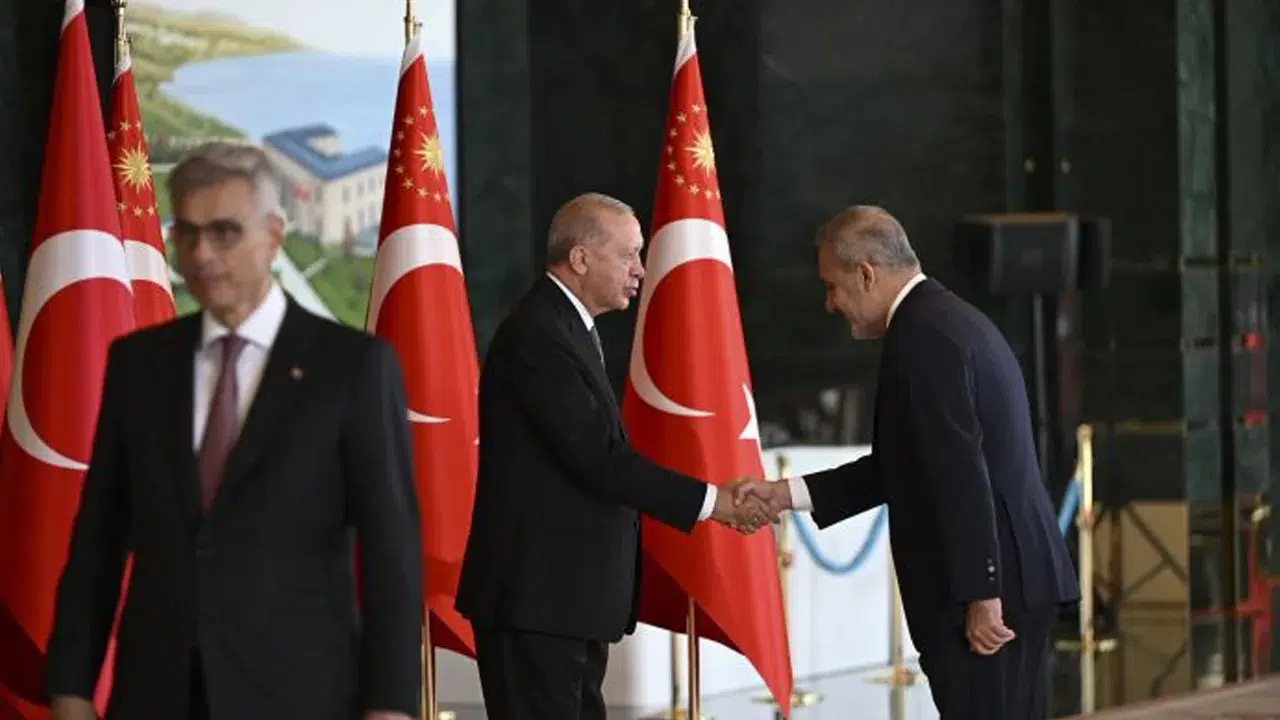 Külliye’de gerçekleştirilen törende, TBMM Başkanı Numan Kurtulmuş, Cumhurbaşkanı Yardımcısı Cevdet Yılmaz, AK Parti Grup Başkanı Abdullah Güler, Anayasa Mahkemesi Başkanı Kadir Özkaya, Yargıtay Başkanı Ömer Kerkez, Danıştay Başkanı Zeki Yiğit, Sayıştay Başkanı Metin Yener, kabine üyeleri ve MHP Genel Başkanı Devlet Bahçeli hazır bulundu. Ayrıca Genelkurmay Başkanı Orgeneral Selçuk Bayraktaroğlu ve kuvvet komutanları, TBMM üyeleri, Diyanet İşleri Başkanı Ali Erbaş, Cumhurbaşkanlığı Genel Sekreteri Hakkı Susmaz, MİT Başkanı İbrahim Kalın, İletişim Başkanı Burhanettin Duran, üst düzey kamu kurum temsilcileri, yabancı misyon şefleri ve uluslararası kuruluş temsilcileri Cumhurbaşkanı Erdoğan’a tebriklerini sundu.