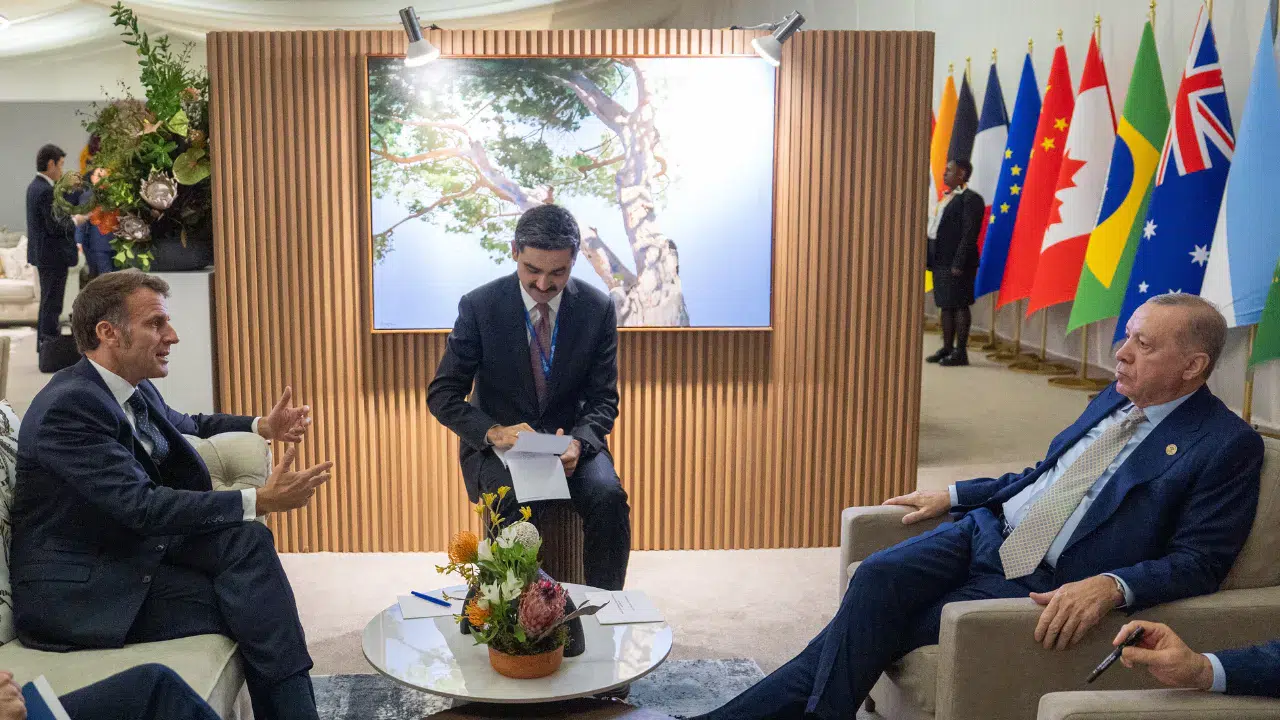 Cumhurbaşkanı Recep Tayyip Erdoğan, G20 Liderler Zirvesi için bulunduğu Güney Afrika Cumhuriyeti’nde Fransa Cumhurbaşkanı Emmanuel Macron ile bir görüşme gerçekleştirdi.