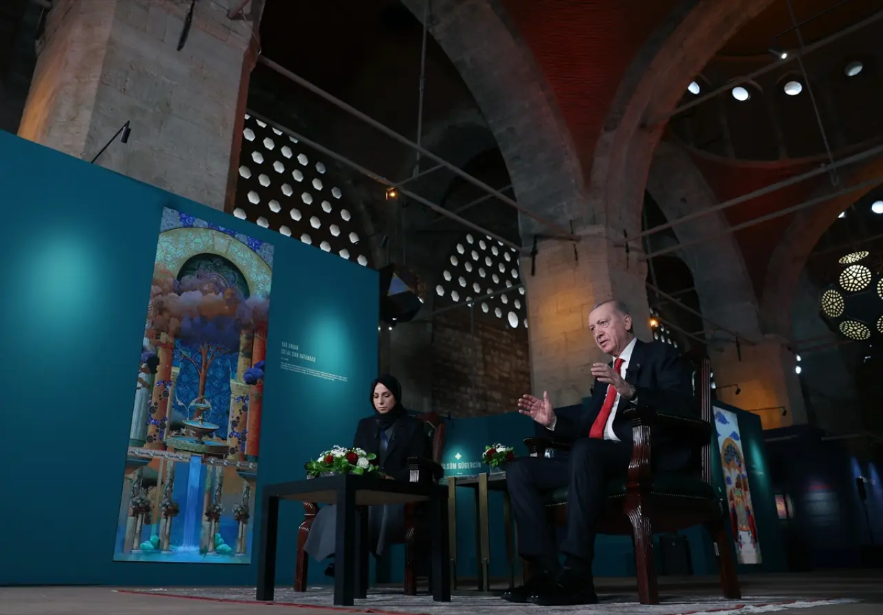 Geleneksel İslam sanatlarının inanç ve medeniyetin güzelliklerini yansıtması bakımından kritik bir öneme sahip olduğunu vurgulayan Erdoğan, "Minyatürden ebruya, kalem işinden çiniye, hüsnü hattan tezhipe geleneksel İslam sanatları hem inancımızın hem medeniyetimizin derinliklerini, güzelliklerini göstermesi bakımından çok çok önemlidir. Bunlar Müslümanların sahip oldukları yüksek estetik şuurun somutlaşmış eser haline gelmiş, görünür olmuş, vücut bulmuş şekilleridir. Biraz önce eserlerimizi tek tek gördüm, inceledim. Hakikaten her biri çok titiz bir emeğin, seçkin bir üslubun ve göz nurunun meyvesi olarak bu tarihi yapıyı süslüyor" ifadelerini kullandı.