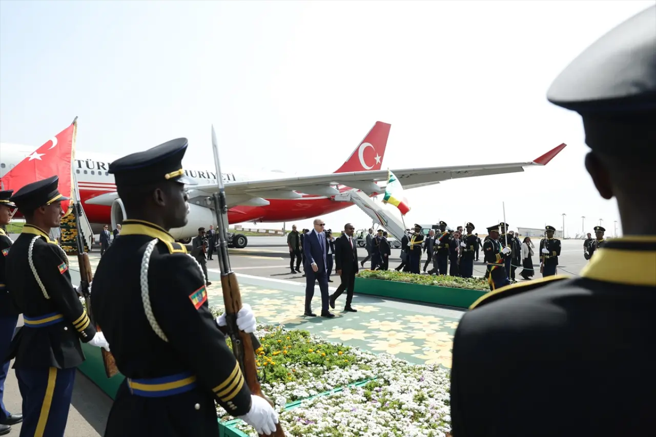Cumhurbaşkanı Erdoğan, Addis Ababa Bole Uluslararası Havalimanı’nda Etiyopya Başbakanı Abiy Ahmed, Etiyopya Dışişleri Bakanı Gedion Timothewos ve Türkiye’nin Addis Ababa Büyükelçisi Berk Baran tarafından karşılandı. Erdoğan ile birlikte resmi heyetin de Etiyopya’ya geldiği bildirildi.