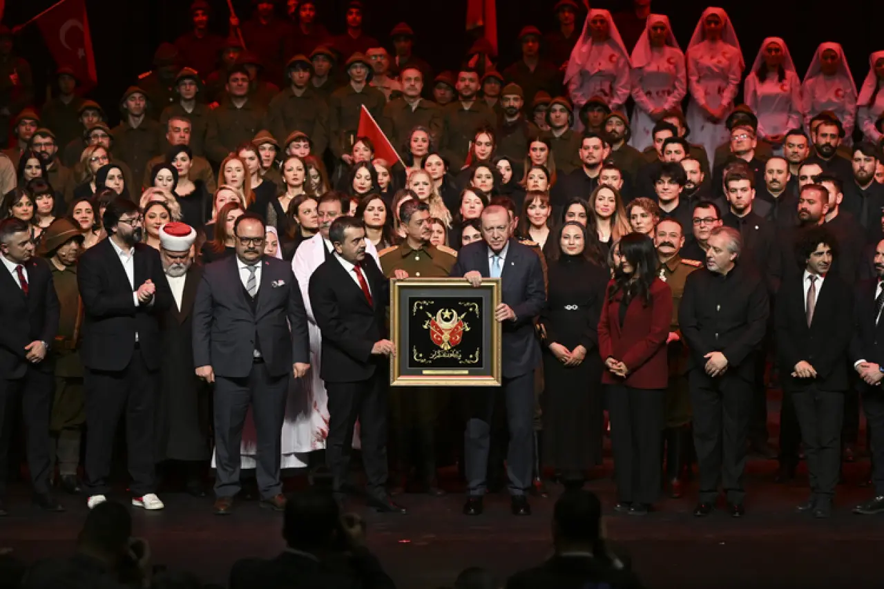 Cumhurbaşkanı Recep Tayyip Erdoğan, Beştepe Millet Kongre Merkezi'nde düzenlenen etkinlikte, Çanakkale Zaferi'ni konu alan "Şüheda 1915" tiyatro gösterimine katıldı. Senaryo ve tarih danışmanlığını Milli Eğitim Bakanı Yusuf Tekin'in üstlendiği eser, Arıburnu Muharebeleri'nden Anafartalar Zaferi'ne kadar uzanan süreci insan hikayeleri üzerinden sahneye taşıdı. Prof. Dr. İbrahim Sarıtaş ve Utku Koçak tarafından kaleme alınan, yönetmenliğini ise Bora Severcan'ın yaptığı oyunda, 1915 yılında Çanakkale Cephesi'nde verilen mücadele dramatik bir bütünlükle anlatıldı.