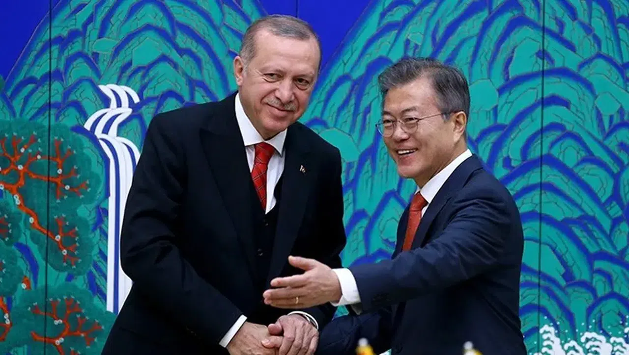 Resmi karşılama töreninin ardından Cumhurbaşkanı Erdoğan ve Lee, karşılıklı olarak heyetlerini birbirine takdim etti. Daha sonra iki lider, merdivenlerde Türkiye ve Güney Kore bayrakları önünde tokalaşarak basın mensuplarına görüntü verdi. İki devlet başkanı önce heyetlerarası görüşmelerde bulunacak.