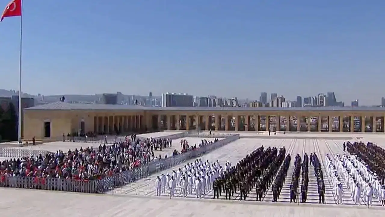 Kutlamalar kapsamında ilk tören Anıtkabir’de gerçekleştirildi. Cumhurbaşkanı Erdoğan ve protokol üyeleri, Aslanlı Yol’da yürüyerek törensel geçişi yaptı. Anıtkabir’e geliş, coşkulu ve saygı dolu bir atmosferde gerçekleşti.