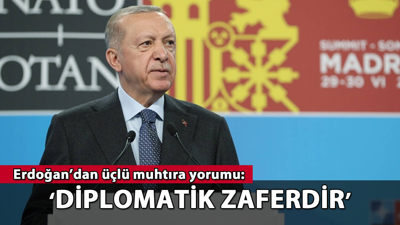 Böylece Türkiye'nin ilk günden itibaren dile getirdiği hassasiyetlerin tamamının üçlü muhtıraya girdiğine dikkati çeken Erdoğan, "Türkiye ve NATO ile bu muhtıranın kazananı aynı zamanda İsveç ve Finlandiya halklarıdır. Terörle mücadele yönünde atılacak her müspet adım, bu ülkelerin barış, huzur ve güvenliğine katkı yapacaktır." diye konuştu.