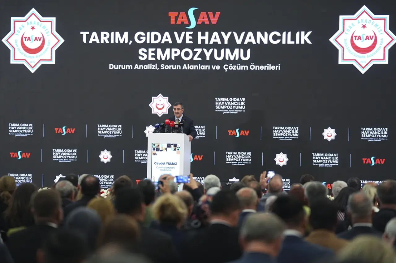 Cumhurbaşkanı Yardımcısı Cevdet Yılmaz, MHP Genel Başkanı Devlet Bahçeli'nin himayesinde Türk Akademisi Siyasi Sosyal Stratejik Araştırmalar Vakfı (TASAV) tarafından ATO Congresium'da düzenlenen "Tarım, Gıda ve Hayvancılık: Durum Analizi, Sorun Alanları ve Çözüm Önerileri" sempozyumuna katıldı.