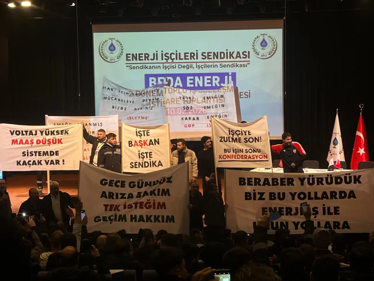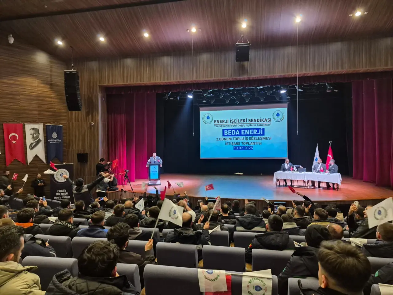BEDA Enerji 2. Dönem Toplu İş Sözleşmesi süreci kapsamında düzenlenen istişare toplantısı, Enerji İşçileri Sendikası’nın ev sahipliğinde Prof. Dr. Adem Baştürk Kültür Merkezi’nde saat 19.30’da yoğun katılımla gerçekleştirildi. Sendika Yönetim Kurulu üyeleri ile Genel Başkan Mahmud Altunsoy’un katılımlarıyla icra edilen toplantının sunuculuğunu Muhammed Emin Tekin üstlenirken sendika üyeleri, temsilciler ve basın mensupları aynı salonda dayanışma ve kararlılık mesajı verdi.