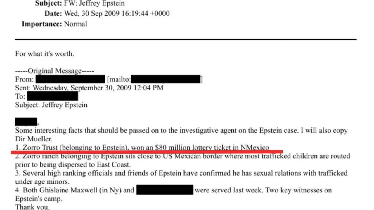 ABD kamuoyunu sarsan yeni bir iddiaya göre, Jeffrey Epstein’a ait olduğu belirtilen Zorro Trust isimli vakıf, New Mexico eyaletinde yaklaşık 80 milyon dolar değerinde bir piyango ikramiyesi kazandı.