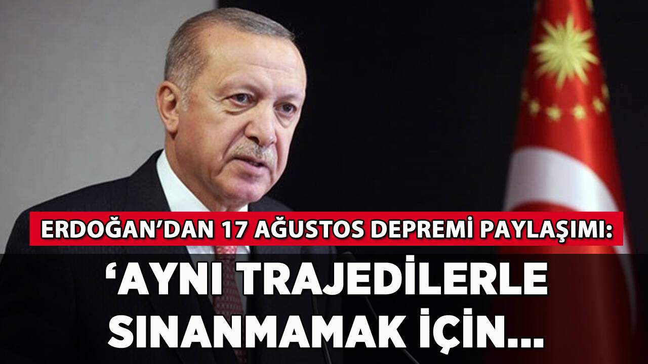 Erdoğan, yaptığı paylaşımda, "17 Ağustos 1999 Depremi'nde hayatını kaybeden vatandaşlarımıza Allah'tan rahmet diliyor, aradan geçen 23 yıla rağmen acıları hiç dinmeyen yakınlarının hüznünü yürekten paylaşıyorum. Bir daha aynı trajedilerle sınanmamak için yürüttüğümüz çalışmalara kararlılıkla devam edeceğiz" dedi.