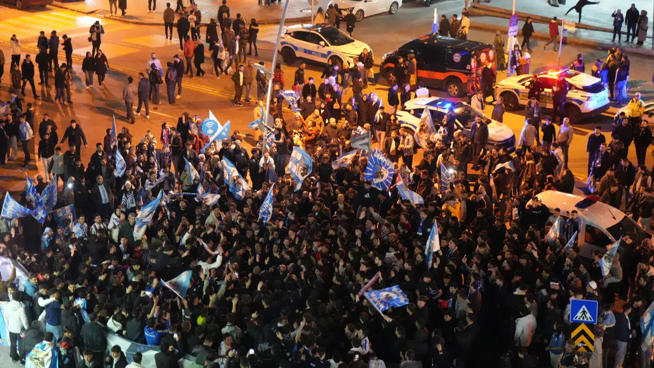Trendyol 1. Lig'in 36. haftasında Erzurumspor FK, deplasmanda Bodrum FK ile 1-1 berabere kaldı. Ligin bitime 2 maç kala, 5 yıllık aranın ardından yeniden Süper Lig'e yükselmeyi garantileyen mavi-beyazlı takımın taraftarları Cumhuriyet Caddesi başta olmak üzere kentin dört bir tarafında kutlama yapıyor. Kutlamalar gece boyunca devam etti.