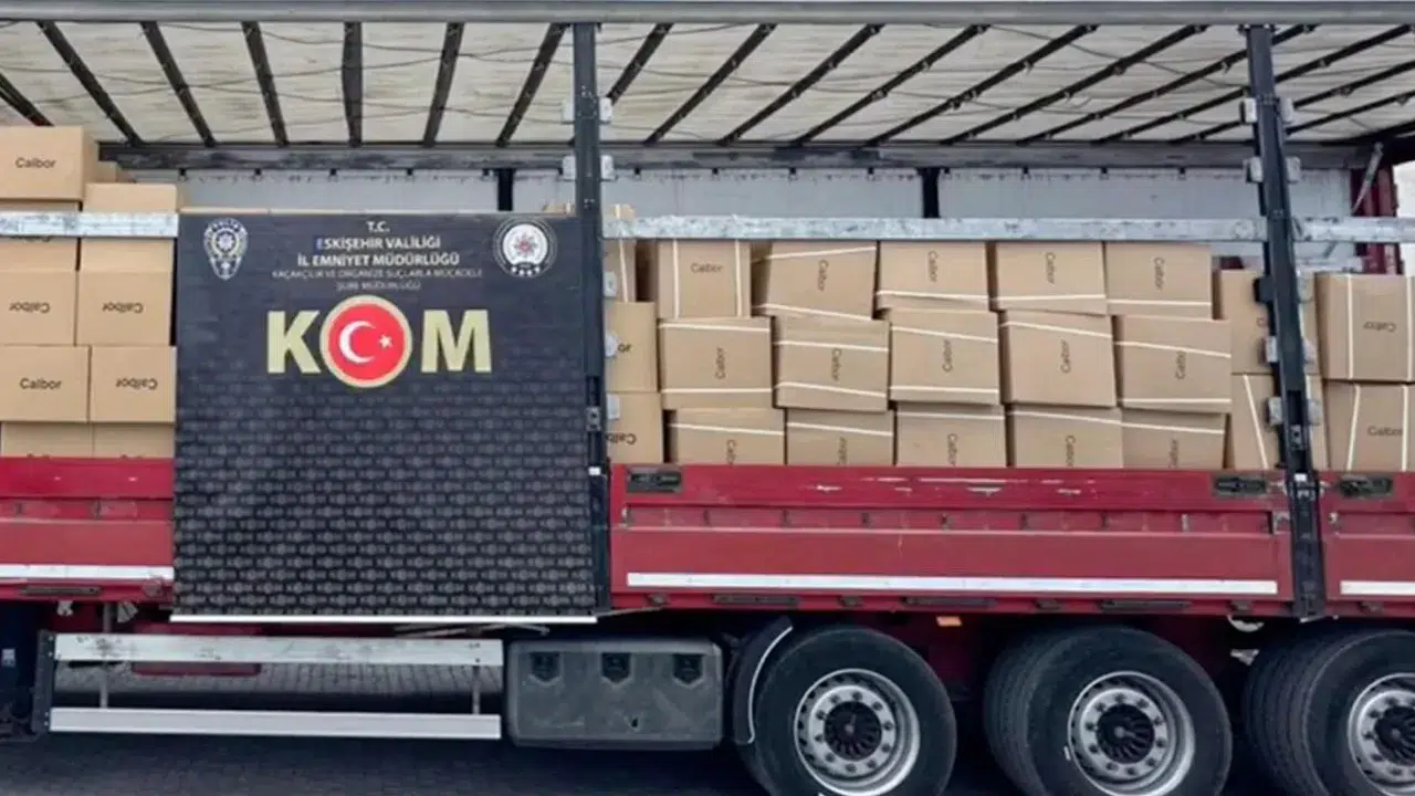 Eskişehir İl Emniyet Müdürlüğü Kaçakçılık ve Organize Suçlarla Mücadele Şube Müdürlüğü tarafından durdurulan bir tır aracının çekici ve dorsesinde yapılan arama neticesinde piyasa değeri 7 milyon 500 bin TL olan 6 milyon 900 bin dal sahte bandrollü boş makaron ve 960 kilo sagte bandrollü tütün ele geçirildi. Olayla ilgili yakalanarak gözaltına alınan şüpheli M.A. hakkında 'Kaçakçılıkla Mücadele Kanunu'na Muhalefet' suçundan adli işlem başlatıldı.