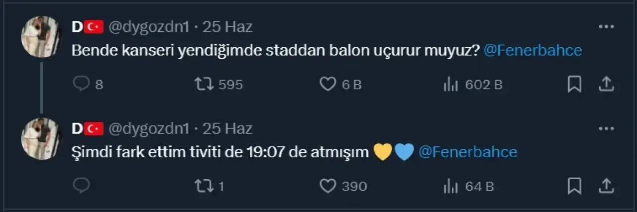 Duygu'nun kanserle mücadelesi sırasında sosyal medya hesabından paylaştığı gönderiler ise yürekleri burktu. Sıkı bir Fenerbahçe taraftarı olan Duygu, ‘’Ben de kanseri yendiğimde stattan balon uçurur muyuz?'' notunu paylaşmıştı.