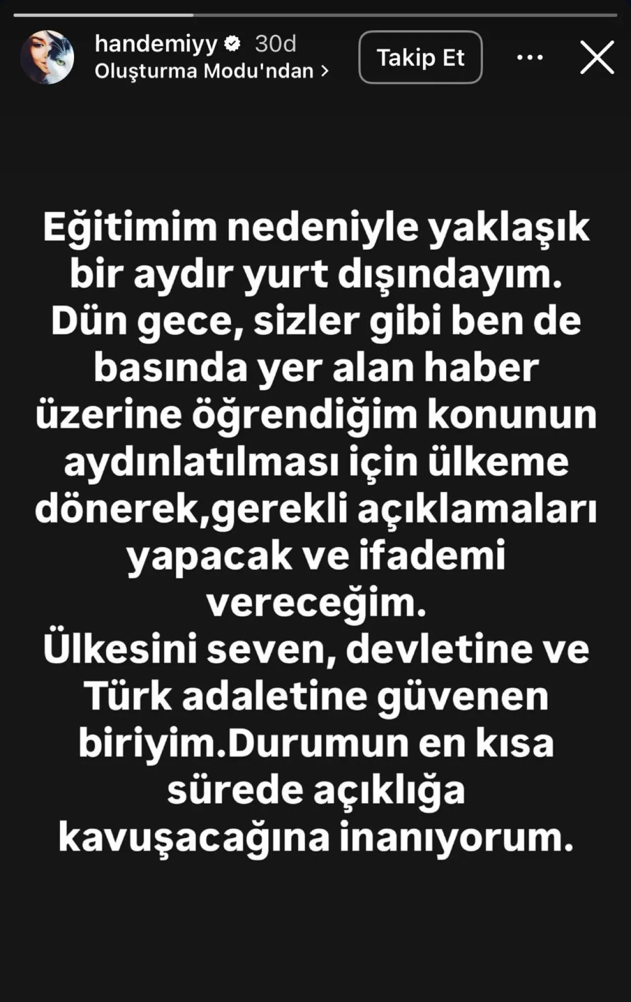 "Dün gece, sizler gibi ben de basında yer alan haber üzerine öğrendiğim konunun aydınlatılması için ülkeme dönerek, gerekli açıklamaları yapacak ve ifademi vereceğim."