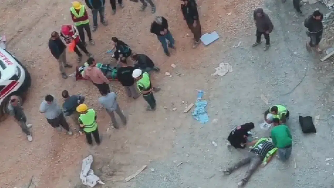 Hatay'da şantiye alanında 25 metrelik vincin kırılmasıyla yere düşen 2 işçi, metrelerce yükseklikten yere çakılarak yaralandı.