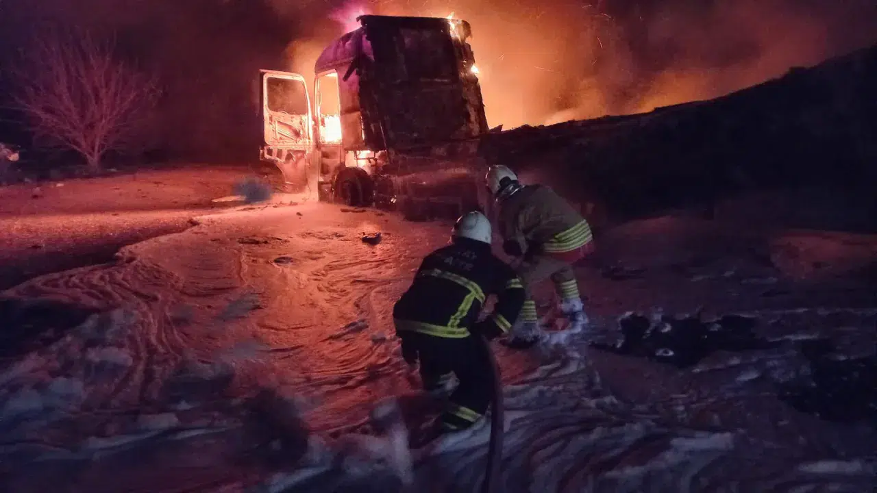 Yangın, gece saatlerinde Samandağ ilçesi Kurtderesi Mahallesi'nde yaşandı. Seyir halinde olan tır, bilinmeyen nedenle yanarak alevlere teslim oldu. Alevler içinde kalan tırın yandığını fark eden vatandaşlar durumu 112 Acil Çağrı Merkezi'ne bildirdi. Olay yerine itfaiye ekipleri sevk edildi.