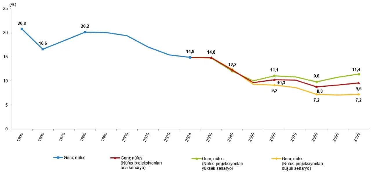 - Türkiye’de genç nüfusun toplam nüfus içindeki oranı %14,9’a düştü.