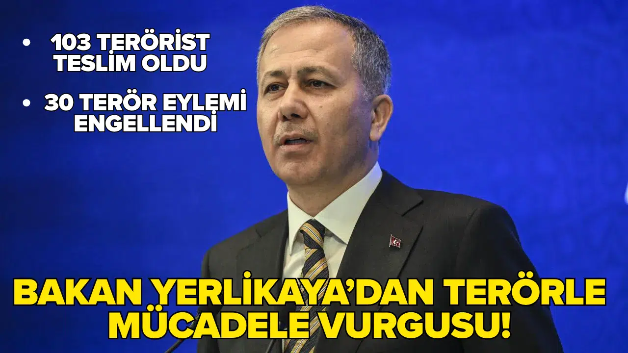 688 bin personelle birlikte suçlularla mücadelenin kesintisiz ve amansız bir şekilde yürütüldüğünü dile getiren Yerlikaya, "Ülkemiz, yıllardır devam eden terörle sınanmasını bitirecek; kardeşliğimizi, birliğimizi ve dirliğimizi güçlendirecek yeni bir dönemin, ‘Terörsüz Türkiye’ döneminin kapılarını aralamıştır. Terörsüz Türkiye; Türk’ün, Kürt’ün, Arap’ın ve bütün farklılıkların aynı sofrada, aynı kaderde, aynı vatanda kardeşçe yaşadığı bir büyük aile demektir. Terörsüz Türkiye; huzur, kalkınma ve kardeşliğimizi büyütme projesidir. Çocuklarımızın korkusuz büyüdüğü, şehirlerimizin canlandığı, dağların, vadilerin, sokakların kardeşliğin sesiyle dolduğu, hiçbir gencimizin terör örgütlerinin ağına düşmediği, demokrasinin ve hukukun güç kazandığı, uluslararası alanda güçlü, bölgesinde lider bir Türkiye’nin adıdır. Ülkemizin kaynaklarını gençlerimizin eğitimine, çiftçimizin emeğine, esnafımızın ticaretine, sanayicimizin üretimine, şehirlerimizin turizmine ve kalkınmasına yönlendirmektir" ifadelerini kullandı.