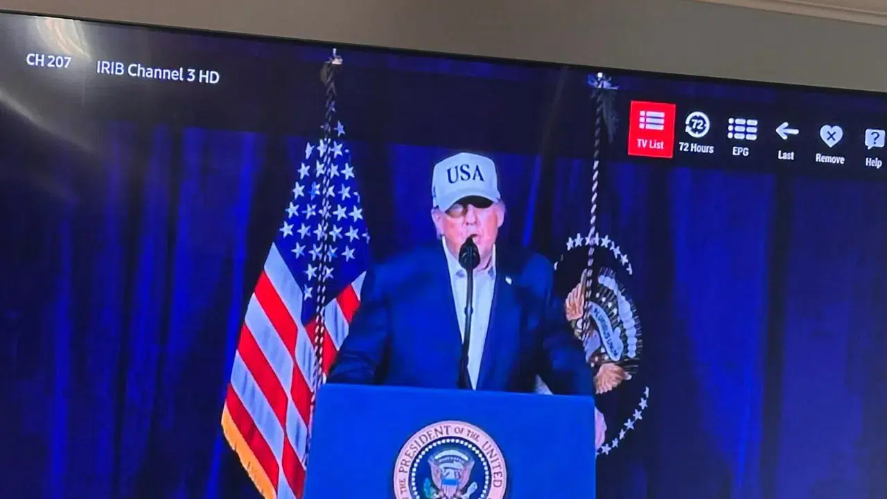 Yayın kesintisi sırasında ABD Başkanı Donald Trump ile İsrail Başbakanı Binyamin Netanyahu'nun İran halkına hitaben yaptığı konuşma Farsça altyazıyla ekrana getirildi. Trump ve Netanyahu, konuşmalarında İran yönetimini hedef alarak, İran halkını harekete geçmeye çağırdı.