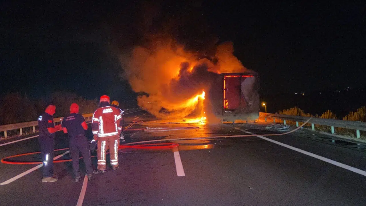 İstanbul-İzmir Otoyolu’nun Bursa Orhangazi mevkiinde seyir halindeyken alev alan kargo kamyonu, itfaiye ekiplerinin müdahalesiyle kontrol altına alındı. İstanbul’dan Bursa yönüne giden Ramazan Altıntop yönetimindeki kamyon, Orhangazi çıkışı yakınlarında bilinmeyen bir nedenle yanmaya başladı.
