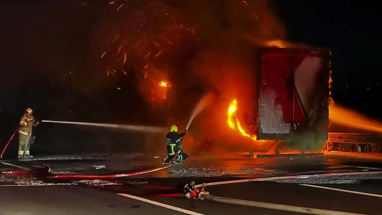 Yangın kısa sürede kamyonu sararken, olay yerine sevk edilen jandarma ve itfaiye ekipleri müdahalede bulundu. Yaklaşık iki saat süren çalışmalar sonucunda yangın söndürülerek kontrol altına alındı. Ekiplerin soğutma işlemleri devam ediyor.