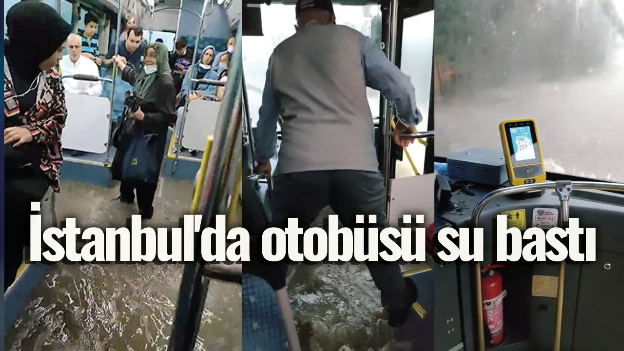 Yolculardan birinin cep telefonu kamerasına yansıyan görüntülerde seyir halindeki İETT otobüsünün içerisine yağmur suları doldu.