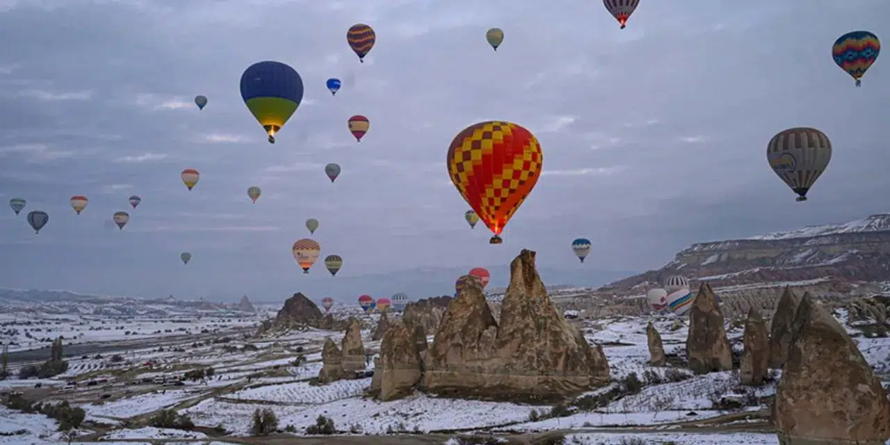 Türkiye’nin dünyaca ünlü turizm merkezi Kapadokya’da, bölgenin simgesi haline gelen sıcak hava balonu turları olumsuz hava koşullarına takıldı. 26 Ocak’tan bu yana etkisini sürdüren şiddetli rüzgar, yoğun sis ve yağış nedeniyle gökyüzü dört gündür renkli balonlardan mahrum kaldı.