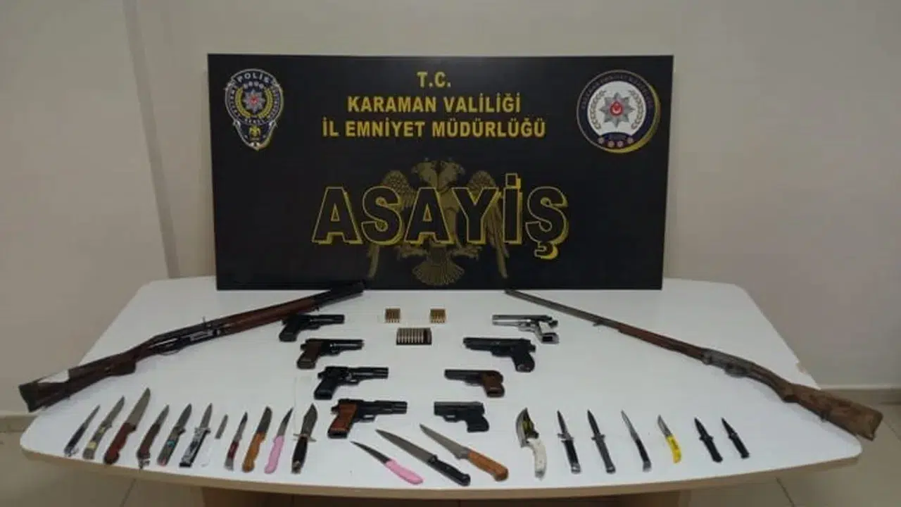 Karaman'da asayiş uygulamalarında uyuşturucu ve ruhsatsız silahlar ele geçirilirken, aranan 11 şahıs tutuklandı.
