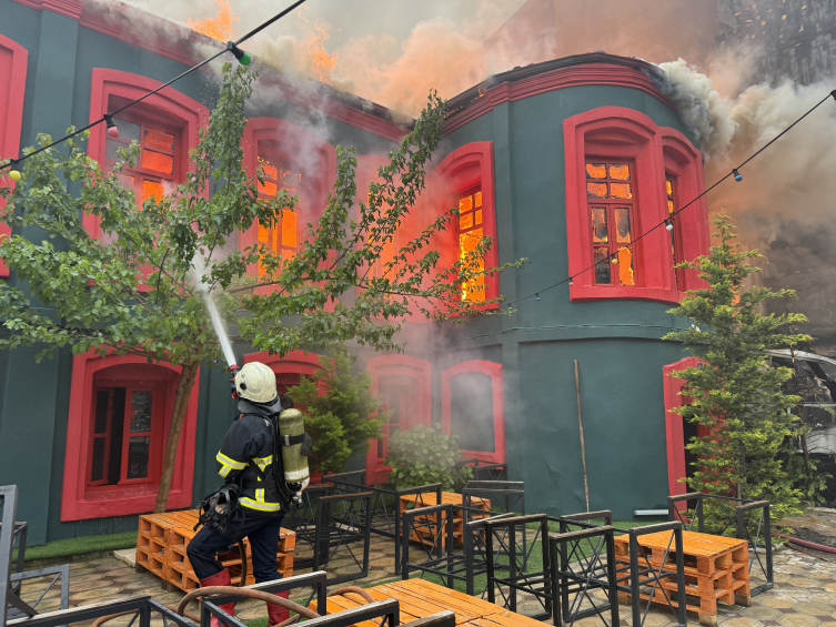Karakaş Mahallesi Karakaşbey Sokak'taki kafe olarak kullanılan Geç Osmanlı dönemine ait 2 katlı tarihi binada yangın çıktı.