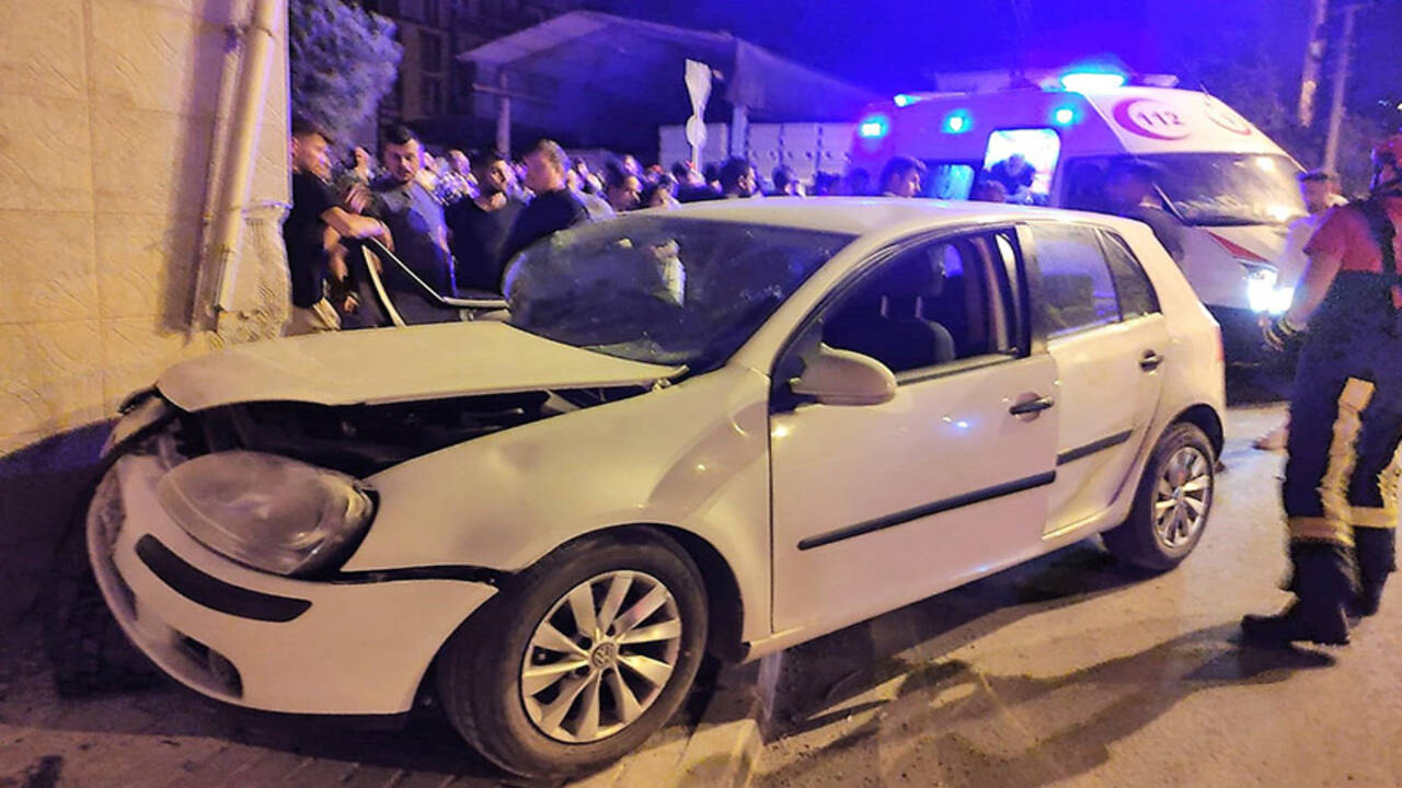 A.Ç. idaresindeki 20 Y 4578 plakalı otomobil, Pehlivan Kavşağı'nda yol kenarındaki binanın duvarına çarptı.