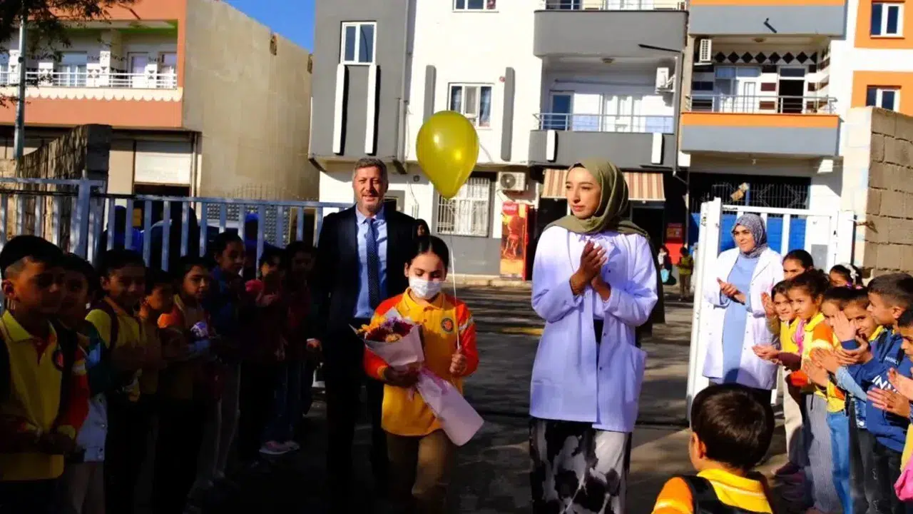 Şanlıurfa'da lösemi teşhisi konulan ve hastalığını yenen 4'üncü sınıf öğrencisi Asmin Koyuncu, okuluna döndüğü ilk gün arkadaşları ve öğretmenleri tarafından görkemli bir törenle karşılandı.