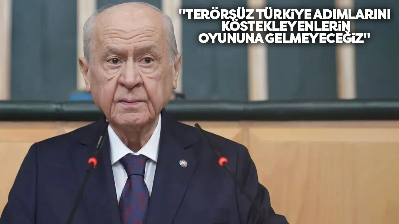 Devlet Bahçeli, Türkiye'nin terörle anılan bir ülke olmaktan hızla kurtulmaya doğru adım adım ilerlediğini vurgulayarak, "'Terörsüz Türkiye' hedefini durduracağını zannedenlerin, buna dair siyasi plan yapanların üzerinde durdukları zemin kaydıkça daha çirkefleşmeleri, beklenen ve öngörülen bir durumdur." sözlerini sarf etti.