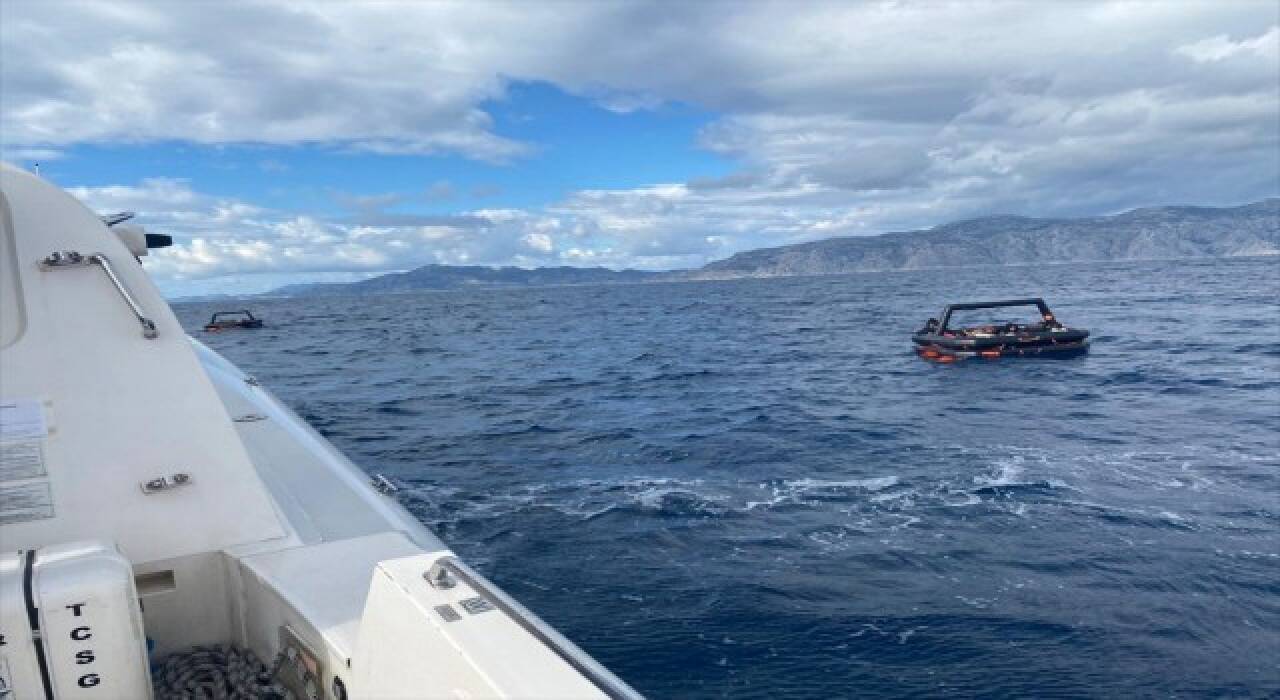 Sahil Güvenlik Komutanlığı ekipleri, Marmaris açıklarında can sallarında düzensiz göçmenlerin olduğu bilgisi üzerine bölgeye hareket etti.