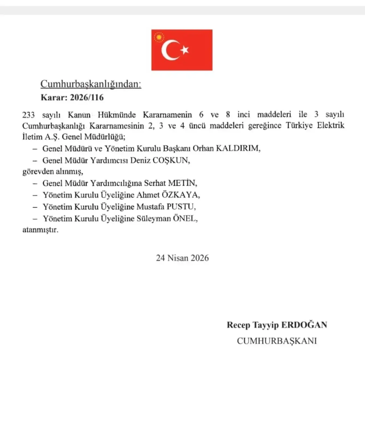 2018-2019 döneminde vekaleten, 2019'dan 25 Nisan 2026'ya kadar asaleten Genel Müdürlük koltuğunda oturan TEİAŞ Genel Müdürü Orhan Kaldırım'ın görevden alınırken, Mustafa Pustu ise TEİAŞ Yönetim Kurulu Üyeliği'ne atandı. Resmi Gazete'de yayımlanan atama kararının ardından ortaya Enerji ve Tabii Kaynaklar Bakanı Alparslan Bayraktar ile TEİAŞ Genel Müdür Yardımcısı Mustafa Pustu arasında gerginlik olduğu iddiaları ortaya atıldı.