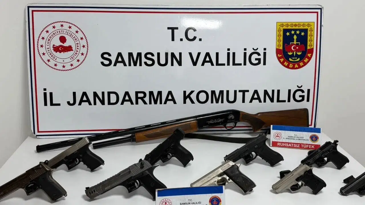 Samsun İl Jandarma Komutanlığı ekipleri tarafından yapılan çalışmalarda, sosyal medya platformlarında silahla havaya ateş ettikleri görüntüler tespit edilen 10 şahıs belirlendi. Ekiplerin şahısların evlerinde gerçekleştirdiği aramalarda 9 adet ruhsatsız kurusıkı tabanca ve 1 adet ruhsatsız av tüfeği ele geçirildi.