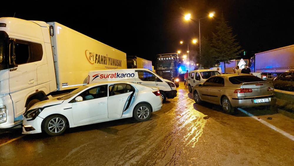 Kamyonun arkasından gelen araçlar yola dökülen akaryakıttan kayarak birbirine çarptı ve zincirleme kaza meydana geldi. Tır, kamyon, kamyonet, hafif ticari araç ile otomobillerin de bulunduğu yaklaşık 25 araç birbirine girdi.