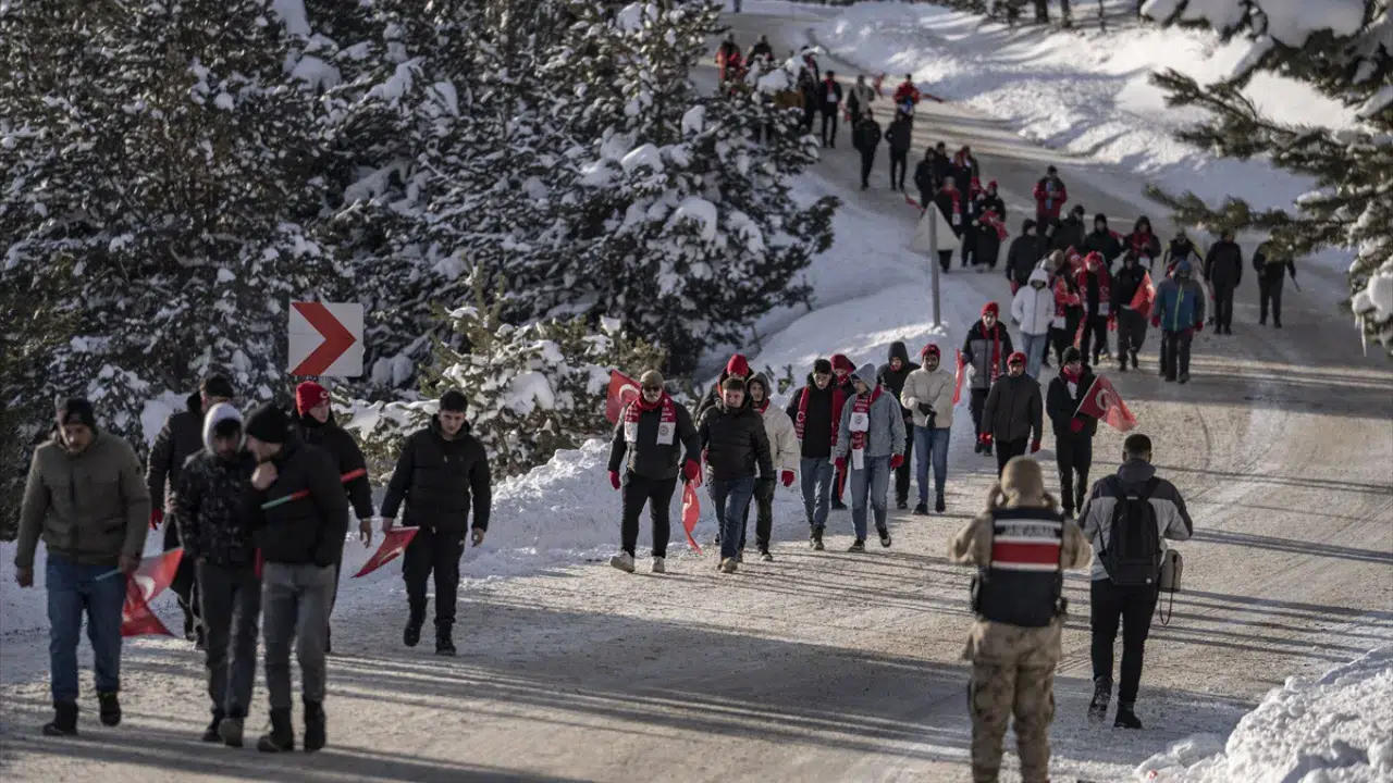 Kent merkeziyle Sarıkamış ilçesinden otobüslerle zirveye ulaşan katılımcılar, Türk bayraklarıyla yürüyerek toplanma alanına geldi. Vatandaşlar, Kızılçubuk bölgesinde şehitler anısına yapılan kardan heykellerin önünde fotoğraf çektirdi.