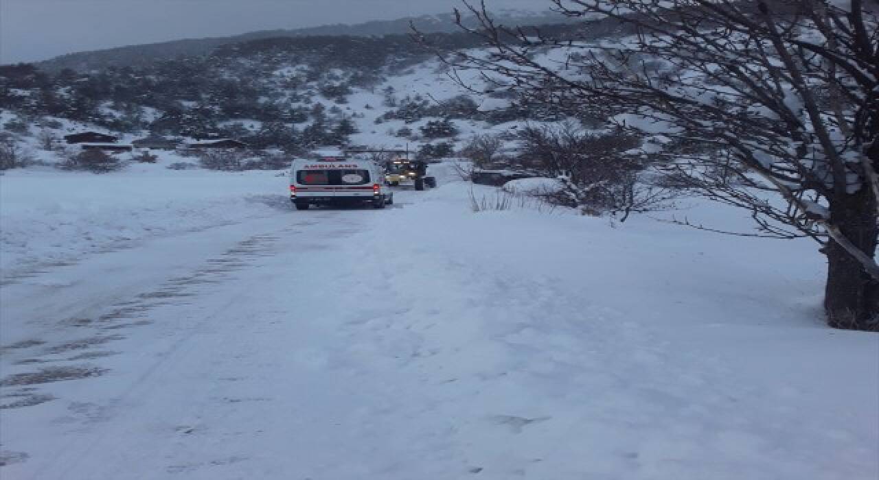 Ekiplerin çalışmasıyla ambulans, greyder eşliğinde köye ulaştı.