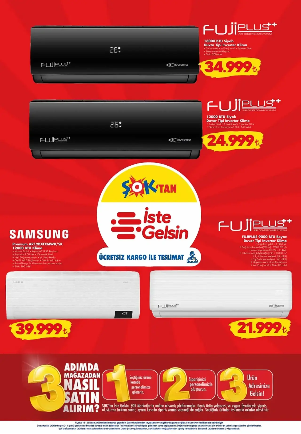 Yaz sıcaklarına hazırlık yapmak isteyenler için Samsung ve FujiPlus marka Inverter klimalar avantajlı fiyatlarla sunuluyor. Mutfak kategorisinde ise Falez Sera Line seramik tava ve tencere setleri, yemek pişirme süreçlerini kolaylaştıracak seçenekler arasında bulunuyor. Teknoloji meraklıları için HP Probook dizüstü bilgisayar modelleri de alternatif olarak katalogda yer alıyor.